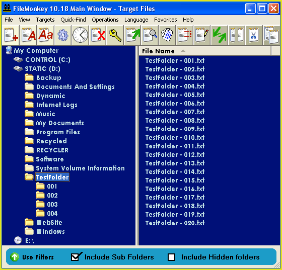 If you want to extend all file operations to include files in sub-folders, check (tick) the "Include Sub Folders" check box.