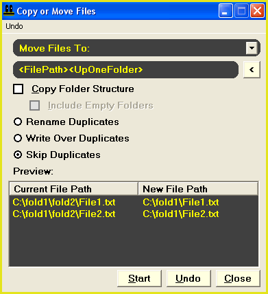 The preview pane at the bottom of the copy window will show you the current and new file paths of the first few files that appear in the main window.