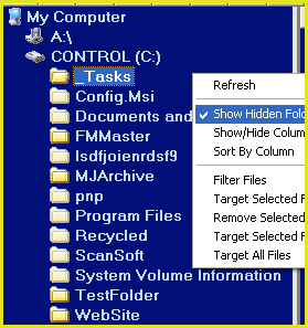 To view hidden folders in the folder tree, right-click on the folder tree and select the "Show Hidden Folders" menu item.