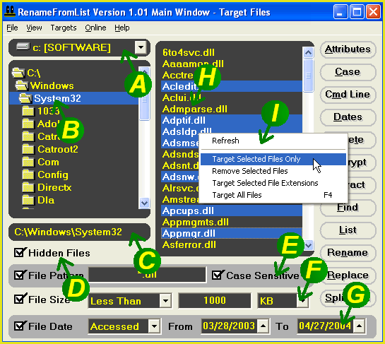 | Use section G to target files by date. You can target files by last accessed date (date that the file was last accessed by you or your computer), last modified date (date that the file was last written to by you or your computer) or Creation date (date that the file was first written to your drive).